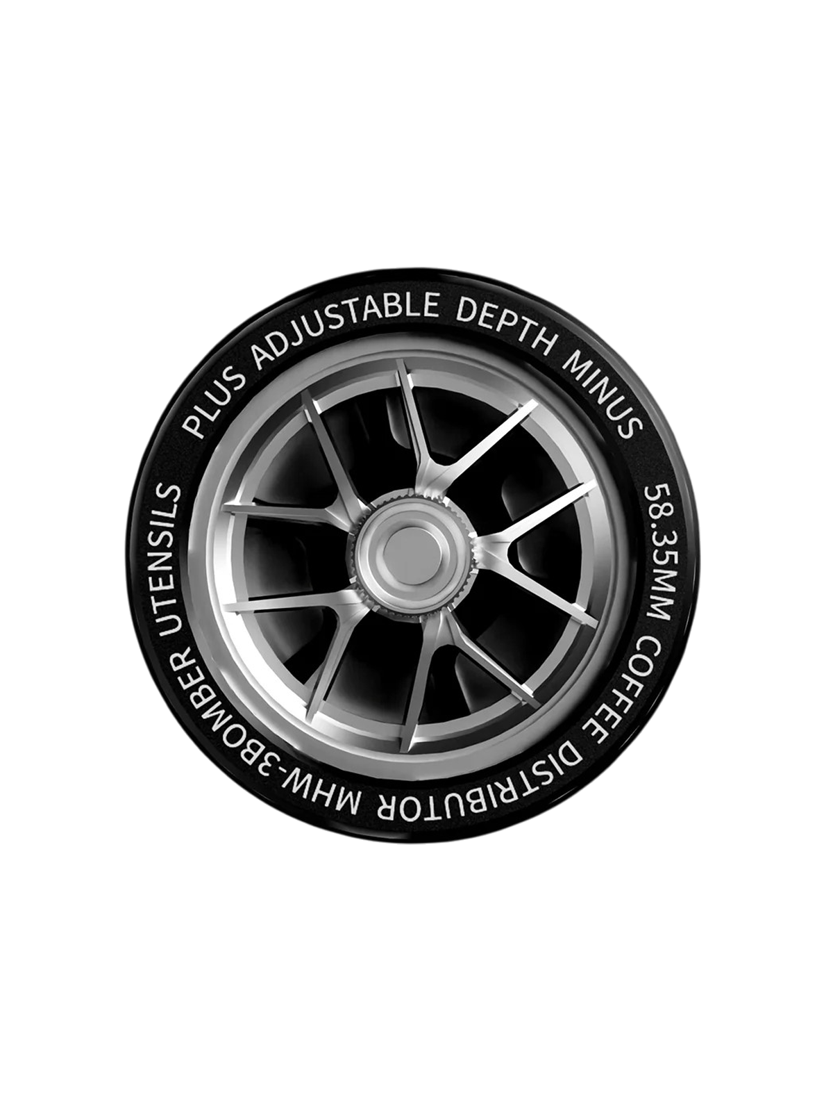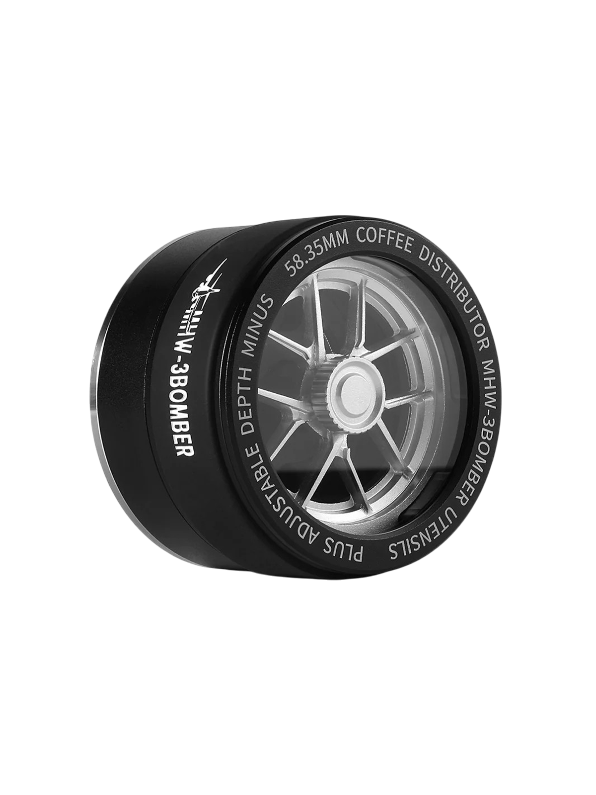 This distributor features a clover-shaped stainless steel base that spreads coffee grounds evenly from edge to center, helping to reduce density buildup and promote uniform water flow. The top includes a tempered glass insert inspired by racing wheel construction, adding both strength and visual refinement.
