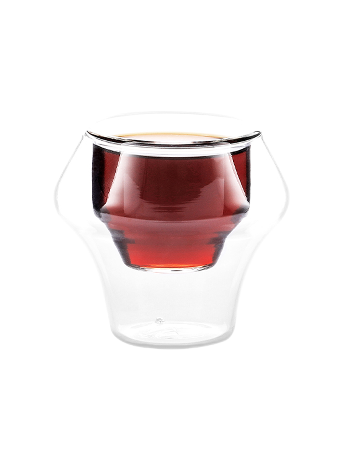The rounded inner wall forms a floating visual effect and supports smooth pouring and easy drinking. A built-in vent between the layers regulates internal pressure, protecting the structure of the glass during repeated use. The 85 g lightweight build and curved lip offer a comfortable drinking experience.